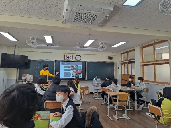 : 1교시 - 이정호 단원이 진행했습니다. 선생님에 대한 소개와 흥미를 끌 수 있는 간단한 퀴즈를 통해 학생들의 관심을 유발하였습니다. 합리적인 소비를 진행하는 방법과 자산을 안전하게 관리하는 방법을 공부하였습니다.