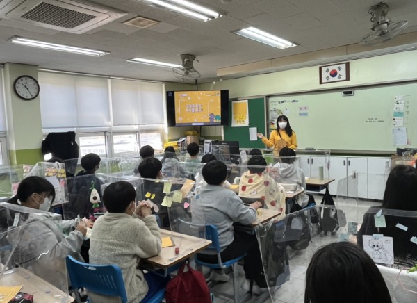 -1교시: '금융을 알고, 투자를 해요'를 주제로 둔전초등학교 6학년 2반 학생들을 대상으로 알기 쉽고 재밌게 수업을 진행했습니다. 금융에 대한 알찬 설명이 담긴 교재인지라, 그 부분에 대해서 정확한 표현과 학습으로 아이들을 이해시키고자 노력했습니다. 그리고 여러 투자 방식과 아이들이 헷갈릴만한 주식과 채권의 차이 등 다양한 단어에 대한 설명도 포함하여 수업을 진행했습니다.