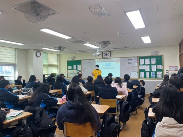 김혜민 단원이 진행하였습니다. <금융이 궁금해, 저축과 투자를 부탁해>라는 주제 아래 금융기관의 종류, 저축과 투자의 필요성에 대해 설명했습니다. 벌써 4번째 중학교 교육인데 그동안 초등학생에 비해 중학생 반응이 저조하여 교육 전 걱정이 되었습니다. 그러나 우려와 달리 8반 아이들 대부분 집중하여 잘 들어주었습니다. 다양한 예시를 녹여 되도록 쉽게 설명해주려 노력하였습니다. 끝에는 퀴즈를 풀며 이해 정도를 확인했는데 대부분 잘 이해한 듯 보였습니다.