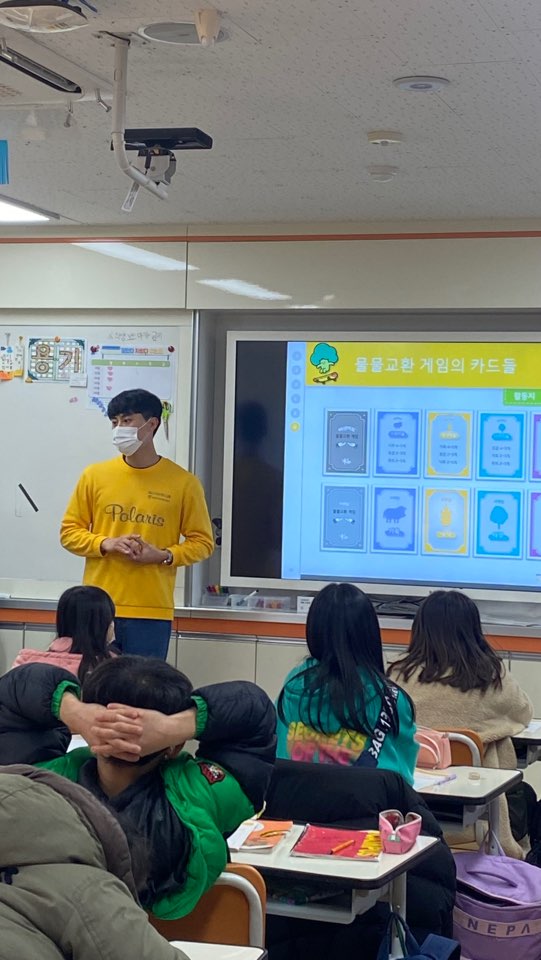 2교시: ‘물물교환 게임’ 설명 동영상을 시청하고 다시 한 번 설명하여 아이들의 집중도를 높인 상태에서 게임을 진행하였습니다. 모둠을 만들고 아이들끼리 게임을 진행하면서도 1교시에 배웠던 물물교환을 설명하고 게임이 끝난 후 물물교환의 불편성 등을 강조하며 화폐의 중요성을 설명하고 수업을 마쳤습니다.