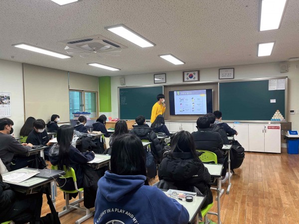 - 2교시 : 1교시에 진행했던 수업을 바탕으로 게임을 진행하여 학생들의 적극적인 수업 참여를 유도하고 협동심을 기르는 시간을 가졌습니다.