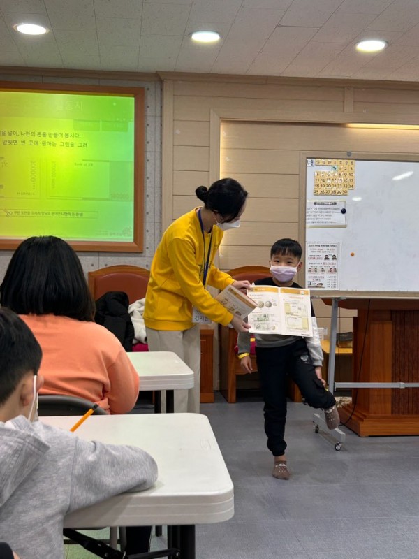 1교시 : 김지현 단원이 수업을 진행했습니다. 돈에 대한 경험을 나누며 돈과 화폐가 무엇이고 어떤 역할을 하는지 학습한 후 나만의 돈 만들기 활동을 하고 발표하는 시간을 가졌습니다. 또한, 돈이 어떻게 만들어지는 지 알아보며 수업을 마무리했습니다.