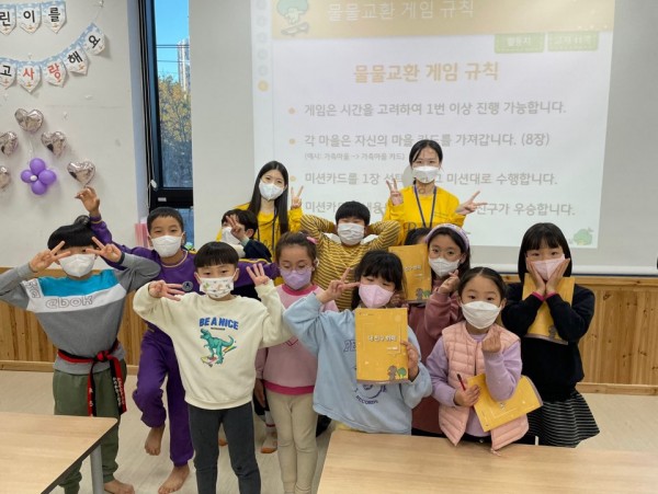 2교시 : 권예진 단원이 게임을 진행했습니다. 같은 조를 구성하여 협력하여 물물교환 게임을 진행할 수 있도록 지도했습니다.