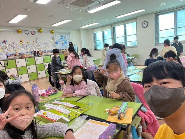 2교시- 1교시에 학습한 내용을 골든벨 퀴즈로 복습하고 '돈을 벌어요', '저축판을 돌려라'게임을 진행했습니다. 아이들이 룰 이해를 잘 할 수 있도록 상세하게 설명하였습니다. 또한, 모든 모둠에 찾아가 게임이 잘 진행되고 있는지 확인하며 아직 돈 계산이 서투른 아이들에겐 돈 계산 하는 법을 가르쳐 주었습니다.