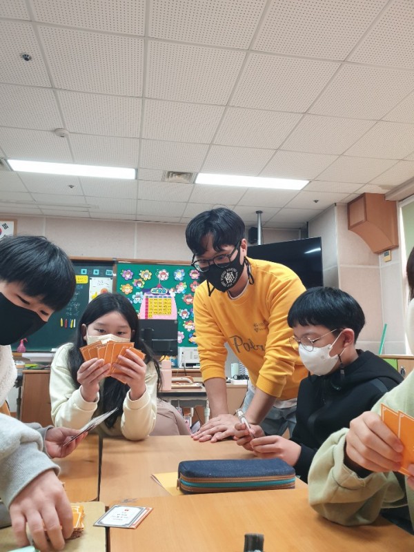 2교시 - 1교시에 배운 내용을 간단하게 복습한 후 돈카드게임을 진행하였습니다. 영상을 통한 설명 후 전체적인 게임 룰을 설명하여 게임을 진행하였습니다. 또한 교실을 돌아다니며 게임에 참여하기 어려워하거나 이해하지 못한 친구들에게 직접 설명하여 모든 아이들이 게임을 즐길 수 있게 하였습니다. 게임이 끝난 후 돈의4가지 기능과 세계의 다양한 화폐를 아이들이 얼마나 인지하였는지 질문을 통해 파악하였고, 최종정리를 하며 수업을 마무리 하였습니다