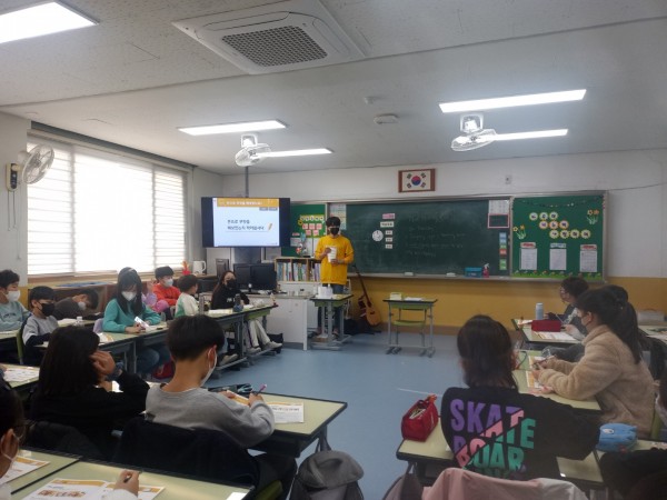 1교시는 최현민 단원이 진행하였습니다. 돈의 기능과 역할, 합리적 소비의 의미, 예산과 결산에 대한 이론 강의, 골든벨 퀴즈를 진행하였습니다.