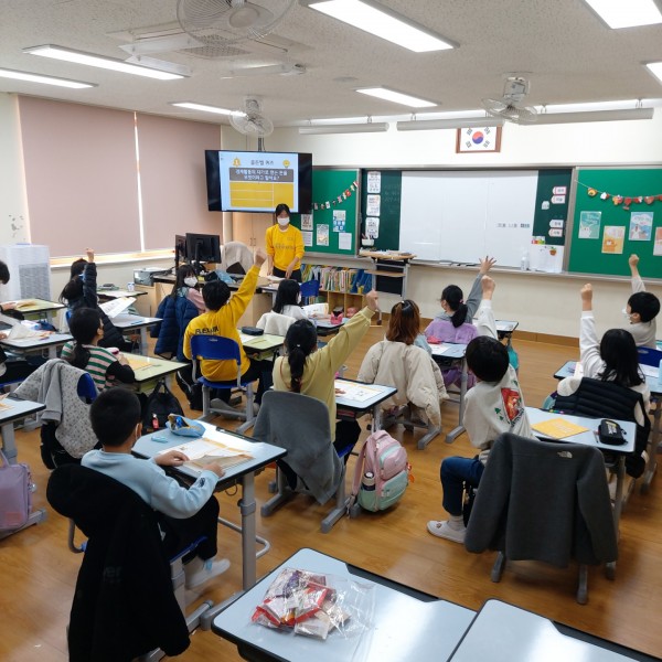 2교시는 오혜진 단원이 진행하였습니다. 골든벨 퀴즈를 진행하였고, 돈을 벌어요 게임을 진행하면서 학생들이 소득과 소비를 직접 해보는 시간을 가졌습니다.