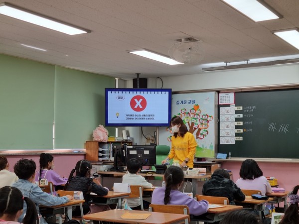 최연수 단원이 진행하였습니다. 오엑스 퀴즈전 바로 앞시간에 어떤내용을 배웠는지 물어보며 정리하였습니다. 퀴즈는 돈의종류, 현명한소비란 무엇인지, 지폐의 역사를 중심으로 40문제를 진행하였습니다. 오엑스를 맞출때마다 책 뒤페이지에 개수를 적으면서 가장 정답을 많이 맞춘 친구를 가려냈습니다. 아이들은 머리위로 오엑스를 그리며 활발히 참여했고, 중간중간 포켓몬퀴즈와 넌센스퀴즈도 내며 분위기가 다운되지않게 진행하였습니다. 참여도 적극적이며 똑똑한 아이들이 많았고, 여러나라의 화폐에 대해서 관심이 많다는 느낌이 들었습니다. 게임이 끝난후 많이 맞춘친구들이 많아서 모든아이들에게 간식을 나눠준 후 수업을 마무리했습니다.
