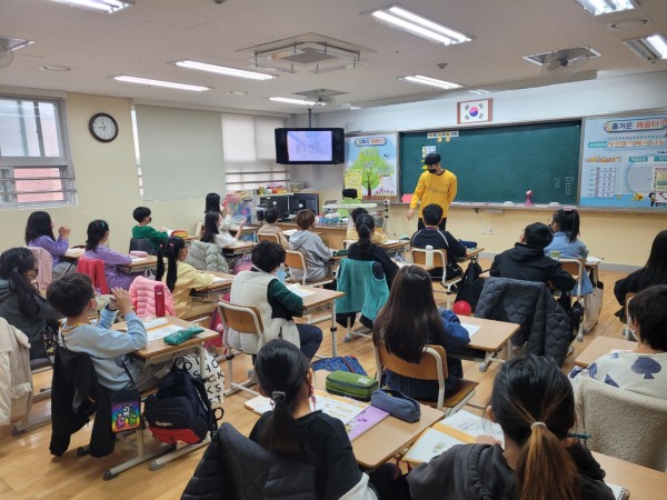 류승훈 단원이 진행하였습니다. 신기한 돈 이라는 주제로 돈의 기능과 환전, 환율의 개념에 대해 설명했습니다. 또한 합리적 소비를 하기 위한 방법으로 용돈 기입장의 필요성을 알렸고 예산, 결산의 중요성을 활동을 통해 전달했습니다. 중간중간 퀴즈를 넣어 아이들의 이목을 끄는 수업을 진행하였습니다. 마지막으로 배운 내용을 기반으로 골든벨 퀴즈를 진행하였습니다.