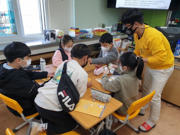 2교시 - 1교시에 배운 내용을 간단하게 복습한 후 돈카드 게임을 진행하였습니다. 영상을 통한 설명 후 전체적인 게임 룰을 설명하여 게임을 진행하였습니다. 또한 돌아다니며 게임에 참여하기 어려워하거나 이해하지 못한 친구들에게 직접 설명하여 모든 아이들이 게임을 즐길 수 있게 하였습니다. 아이들의 참여를 유도하기 위하여 돈카드를 외친 아이들에게 간식을 주는 방식으로 진행하여 돈카드게임에 대한 아이들의 반응이 뜨거워 돈카드에 표시된 돈의 4가지 기능에 대하여 대부분의 아이들이 스스로 숙지할 수 있게 되었습니다. 게임이 끝난 후 간단한 질문을 듣고 수업을 마무리 하였습니다