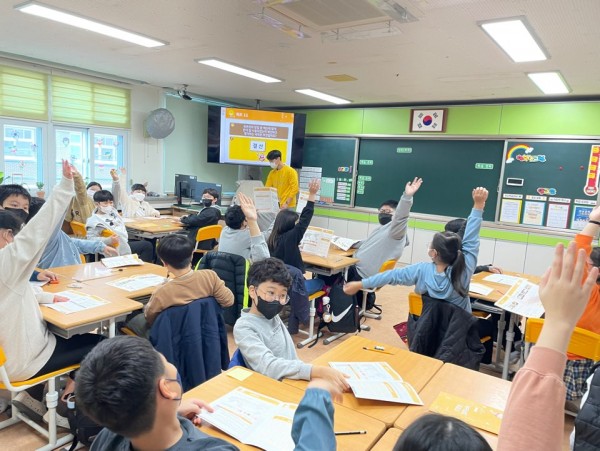 1교시: 돈의 4가지 기능(교환수단, 가치비교수단, 가치저장과 이전수단, 대가지불수단)을 통해 돈에 대한 지식을 설명하였습니다. 또한 환전과 환율에 대한 설명을 통해 세계의 다양한 화폐를 사진을 통해 이해하기 쉽게 설명하였습니다. 마지막으로 예산과 결산에 대한 동영상을 보며 합리적인 소비를 할 수 있게 수업을 진행하며 용돈 기입장에 대한 중요성을 강조하였습니다.
