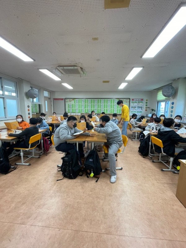 2교시: ‘돈 카드 게임’ 설명 동영상을 시청하고 다시 한 번 ‘돈 카드 게임’을 설명하여 아이들이 게임의 이해도를 높인 상태에서 게임을 진행하였습니다. 아이들끼리 게임을 진행하면서도 1교시에 배웠던 다양한 나라의 화폐와 돈의 4가지 기능(교환수단, 가치비교수단, 가치저장과 이전수단, 대가지불수단)에 대해 설명해주어 게임 참여를 유도하였습니다.