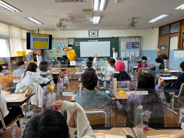 2교시 - 구경모 단원이 1교시 내용을 바탕으로 골든벨 퀴즈와 돈카드 게임을 진행하였습니다. 아이들이 게임에 큰 흥미를 보여서 참여도가 좋았습니다.