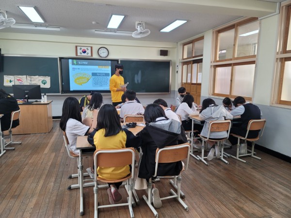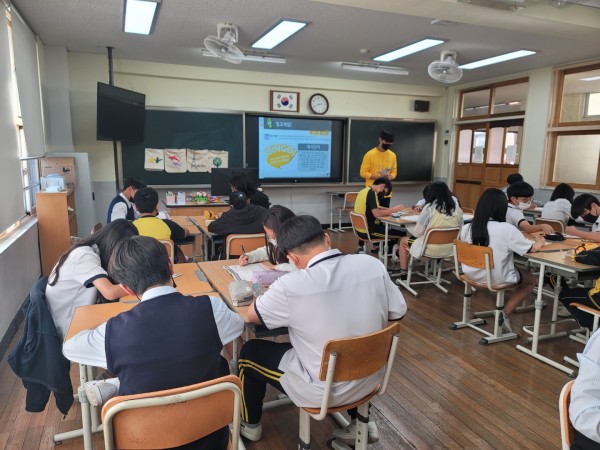 점심 이후 첫 수업임을 감안하여 선생님과 함께 하는 간단한 퀴즈로 학생들의 관심을 유발하였습니다.