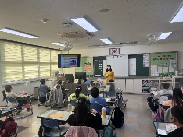 2교시: 고지민 단원이 골든벨 퀴즈와 함께 물물교환 게임을 진행했습니다. 아이들과 소통하며 게임을 진행했기에 아이들이 큰 어려움 없이 게임을 진행할 수 있었습니다.