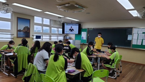 2교시: 1교시에 배웠던 내용을 다시 한번 정리해보고, 이를 바탕으로 골든벨 게임을 진행하였습니다. 골든벨 게임을 통해 수업 내용을 복습을 한 뒤, 교구를 이용하여 '튼튼한 자산관리 아름다운 우리집' 게임을 진행하였습니다. 모든 활동을 마친 뒤, 설문지 작성을 하고 질의응답을 통해 학생들이 수업과 관련하여 궁금했던 부분을 알아갈 수 있도록 하였습니다. 그리고 마지막으로 학생들과 같이 사진을 찍는 시간을 가졌습니다.