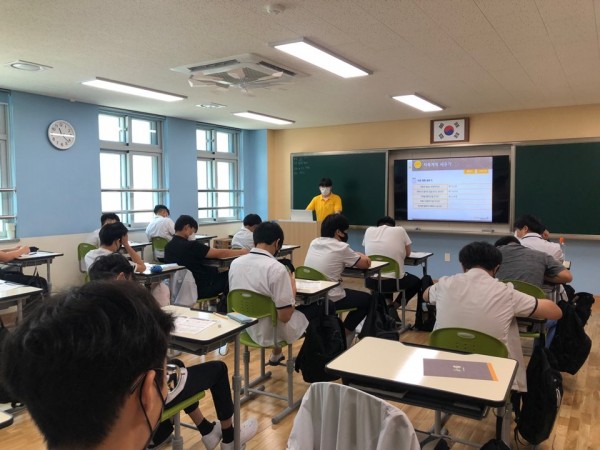 2교시: 올바른 저축, 투자법을 배운 이후 현명한 소비와 사회적 가치 실현을 위해 패스트 패션으로 인한 환경오염을 예시로 들어 설명함.