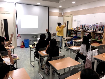 1교시 수업은 박종명 단원이 맡아 진행하였습니다. 돈의 기능에 대해 실생활에서 다양한 예시를 들어 설명하여 학생들이 이해하기 쉽게 설명할 수 있도록 노력하였고 덕분에 집중도가 높았습니다.