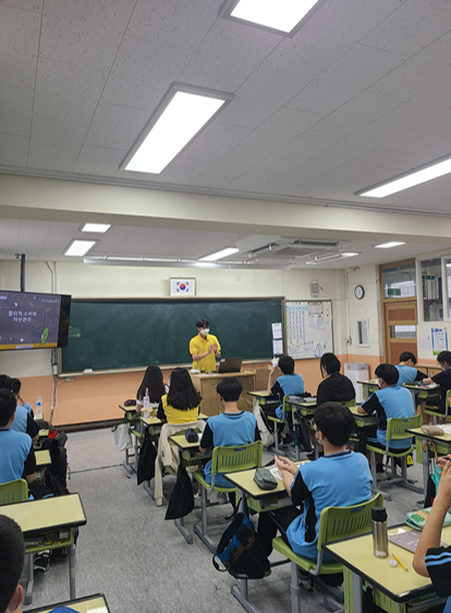 1교시 : 황상현 단원이 교재 수업을 진행하였습니다. 점심시간 이후 첫 시간이고 폴라리스 수업 이후 하교를 하는 시간이었기 때문에 학생들이 집중하기 어려운 시간이었습니다. 학생들의 집중도와 참여도를 높이기 위하여 황상현 단원이 다양한 간식과 퀴즈를 활용하였습니다. 또한 소통 위주의 수업을 진행하여 학생들이 학습적인 지식 뿐만 아니라 인격적인 교제를 강조하는 수업을 진행하였습니다. 또한 수업 말미에 단원이 개인적으로 준비한 퀴즈 등 컨텐츠를 활용하여 복습 효과를 높였습니다.