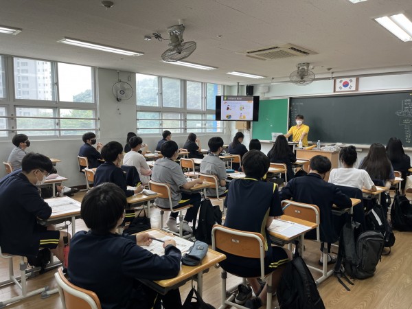 두 번째 교시에는 조별 교구 활동을 진행했습니다. 보드게임 형식의 활동이다보니 아이들이 매우 즐겁게 참여했습니다. 남는 시간동안에는 설문조사지 작성과 사진촬영을 끝으로 수업을 마쳤습니다.