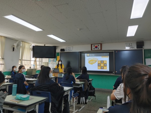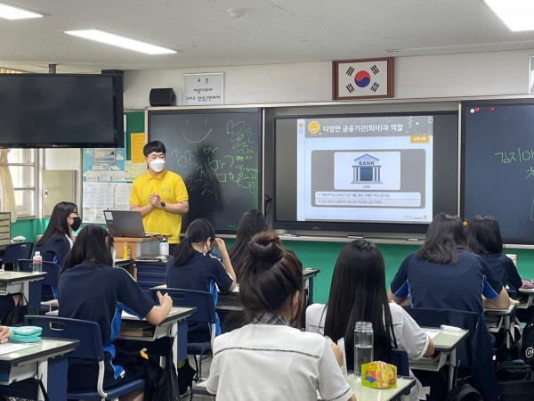 1교시: 권준혁 단원이 수업을 진행하였습니다. 금융기관의 분류, 저축과 투자의 차이점을 중점적으로 강의하였습니다. 학생들이 이해하기 쉽도록 일상생활의 예시를 들어 설명해주었습니다. 금융 관련 단어와 친숙해지기 위하여 빙고 게임도 진행하였습니다.