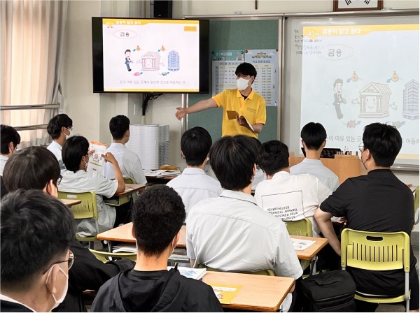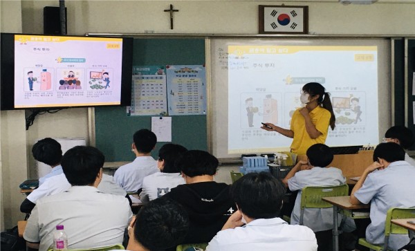 금융의 의미와 금융 생활에 관련된 소비, 소득, 저축과 투자, 부채와 신용에 대한 키워드를 설명하고 학생들의 금융 이해력을 점검했습니다. 그리고 저축에 대해 설명하면서 라이프사이클에 따른 소득, 지출의 불균형을 완화하기 위해 저축이 필요함을 상기시켰습니다. 그리고 투자에 대해 설명하고 대표적인 예시로 주식투자에 대해 보충 학습했습니다. 마지막으로 보험, 연금, 보이스 피싱의 위험성에 대해 설명해주며 이론 수업을 마무리하였습니다.