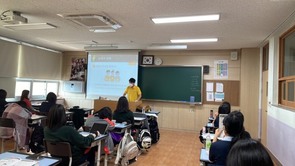 2교시: 최시영 단원이 교구 수업을 진행하였습니다. 1교시에 배운 수업 내용을 기반으로 하여 학생들이 게임을 진행할 때 문제를 풀고 답하는 시간을 가질 수 있도록 지도하였습니다. 게임 진행 중인 모둠을 돌아다니며 질문이 있을 때 도움을 주었고 게임 상의 문제를 틀린 경우 자세하고 심화적인 부분을 설명하였습니다.