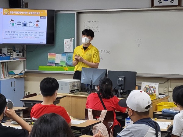 1교시 교재 수업에서는 김찬호 단원이 <금융을 알고 투자를 해요> 교재를 통해 수업 진행을 맡았습니다. 학생들과 많은 소통을 하고 학생들의 참여를 이끌며 수업을 진행했습니다.