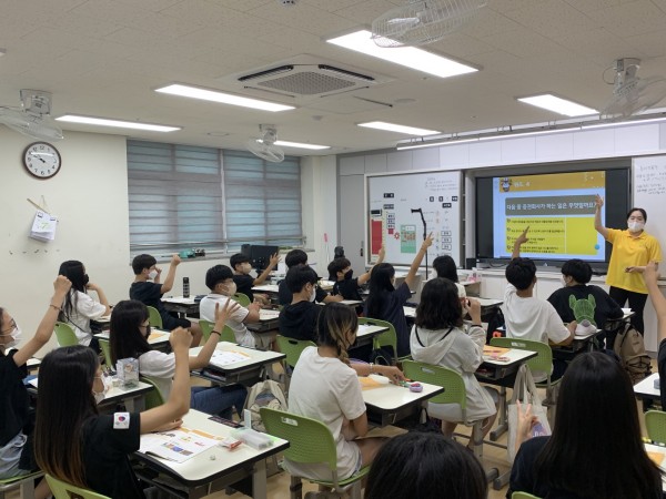 2교시에는 원채연 단원이 퀴즈 맞히기 게임을 통해 1교시에 학습한 내용을 복습했습니다. 퀴즈를 진행하며 학생들이 개념을 상기할 수 있도록 도왔으며, 팀을 나누어 금융 zone 게임을 진행했습니다. 금융 zone 게임을 통해 생활에 밀접한 금융기관을 학생들이 쉽게 떠올릴 수 있도록 지도했습니다.