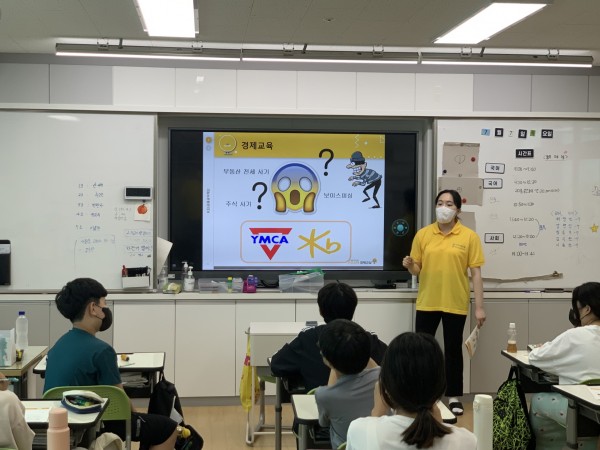1교시에는 원채연 단원이 금융을 알고 투자를 해요 교재를 바탕으로 1교시 수업을 진행했습니다. 교재에 나와있는 금융기관에 대해서 자세히 설명해 주었고 또한 금융기관에서 어떤 역할을 하는지 차이를 중심으로 설명했습니다. 수업 중간 퀴즈를 통해 학생들이 수업에 집중할 수 있도록 해주었습니다. 저축과 투자에 차이점에 대해 설명하고 학생들의 성향을 알려주고 참여를 유도하여 학생들이 더 이해하기 쉽게 설명했습니다.
