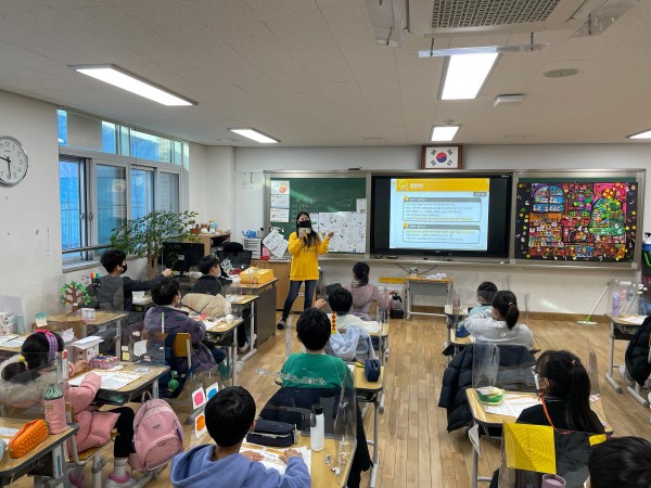1교시 (신새벽 단원) : 아이스 브레이킹으로 학생들과 충분한 친밀감을 형성한 뒤 교육 프로그램을 진행했습니다. 돈의 4가지 기능 교환수단, 대가지불수단, 가치비교수단, 가치저장과 이전수단을 적절한 예시를 들어 설명을 진행했습니다. 교육대상이 초등학생인 만큼 PPT 자료에 학생들이 더 쉽게 이해할 수 있는 예시와 캐릭터들로 흥미를 이끌어냈습니다. 환전과 환율의 의미를 배우고 각 나라별 지폐의 모습과 단위가 다르다는 것을 학습했습니다. 지폐를 보고 어느 나라 돈이지 맞춰보는 퀴즈를 통해 더 쉽고 재미있게 이해할 수 있도록 수업을 진행했습니다. 예산과 결산하는 법을 배우고 용돈기입장을 스스로 작성하는 시간을 가지며, 합리적 소비의 필요성과 중요함에 대해서 학습하는 시간을 가졌습니다.