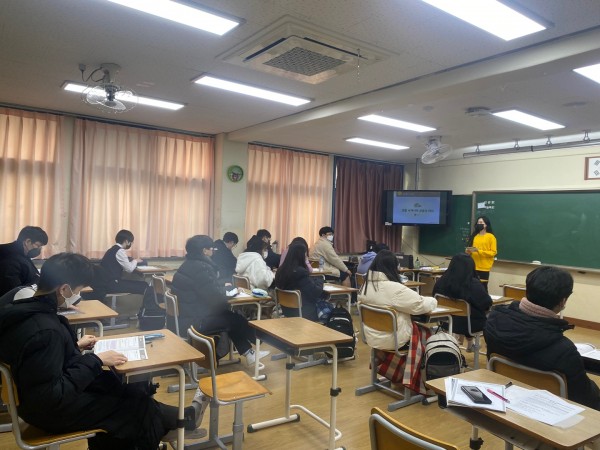 1교시에는 '금융이 궁금해, 저축과 투자를 부탁해' 교재를 이용하여 학생들이 원래 알던 내용들도 많았지만 모르는 학생들도 있었기에 어려워 하는 단어나 이해가 잘 가지 않는 부분에서 학생들의 수준에 맞춰 예시를 더 추가하여 이해하기 쉽도록 진행하였고, 골든벨 퀴즈로 다시 한 번 복습하는 시간을 가지며 수업을 진행하였습니다.