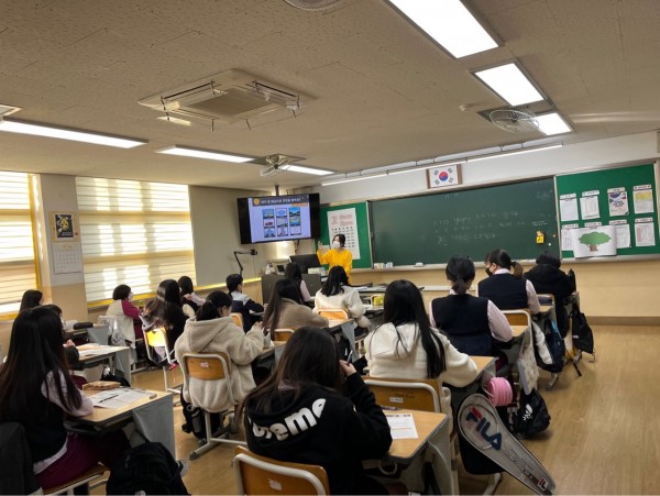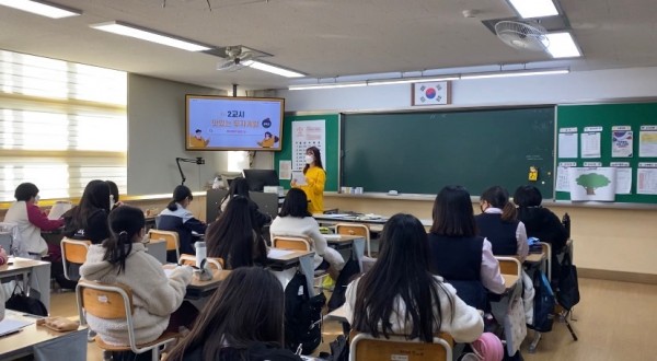 - 2교시 : 김혜민 단원이 진행했습니다. 주식 게임 전 이 전 교시에 배운 소득의 유형, 세금, 보험 등의 개념에 대해 다시 언급했습니다. 학생들에게 주식 투자 경험을 물어보며 공감을 이끌었습니다. 정확한 규칙 숙지를 위해 예시 문제를 들어 이해를 도왔습니다. 게임 중 매 해 HOT ISSUE에 대해 설명해주며 다양한 시각으로 볼 수 있도록 이끌었습니다. 계산을 어려워하는 친구들도 도우며 모든 학생들이 참여할 수 있도록 노력했습니다. 마지막엔 순위가 높은 친구들에게 간단한 간식을 주고 주식 투자의 위험성에 대해 설명하며 마무리 했습니다.