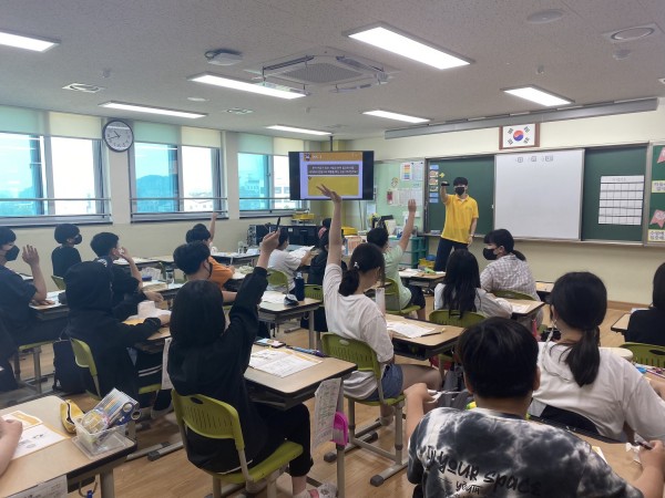 2교시: 신동훈 단원이 진행했습니다. 수업 시간에 배운 내용을 토대로 골든벨 게임과 '금융 zone' 게임을 진행하면서 여러 금융회사들의 역할을 다시 한번 흥미롭게 돌아보는 시간을 가졌습니다.