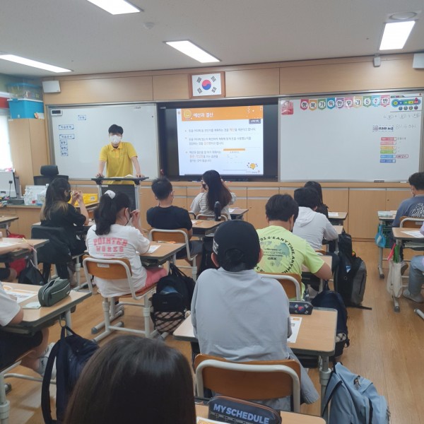교재 <금융을 알고 투자를 해요>를 바탕으로 수업을 진행하였습니다. 생활 속에서 쉽게 볼 수 있는 금융기관의 종류에 대해서 알고 하는 일이 무엇인지 알려주고 저축과 투자는 무엇이 다르고 어떤 종류가 있는지 관련 영상을 시청하며 이해할 수 있도록 하였습니다. 중간중간 질문이나 교재 속의 활동 발표를 통해 학생들의 참여를 유도하였습니다.