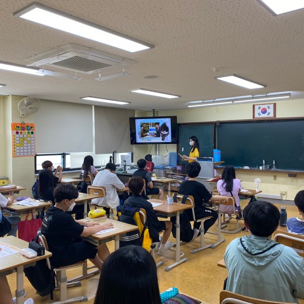: 1교시는 주선영 단원이 진행했습니다. 선생님에 대한 간단한 퀴즈를 풀어 주의를 환기시킨 후,