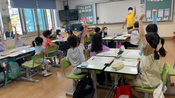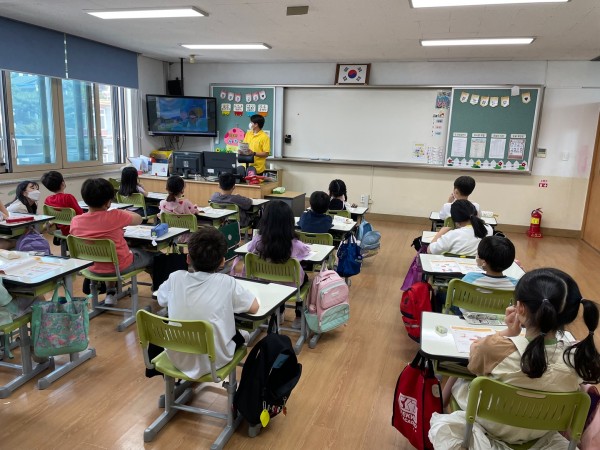 1교시 교재 수업에서는 안병호 단원이 <내 친구 화폐, 현명한 소비> 교재를 통해 수업 진행을 맡았습니다. 학생들이 어려워하는 용어들을 쉬운 말로 바꿔 수업을 진행하였고, 이해를 쉽게 할 수 있도록 현실 상황의 예를 드는 교육방식을 이용했습니다.