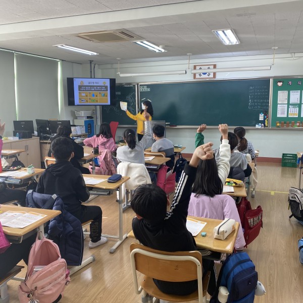 1교시, 교재 [내 친구 화폐, 현명한 소비]를 이용한 이론 수업에서 돈의 개념과 여러 나라의 화폐에 대해 알아본 후 현명한 소비는 어떻게 하는 것인지 실생활에서 겪을 수 있는 예시를 통해 이해하기 쉽도록 수업을 진행하였습니다. 이후 만 원의 행복 활동지를 통해 앞으로의 현명한 소비 생활을 어떻게 할 것인지 활동하고 마무리하였습니다.