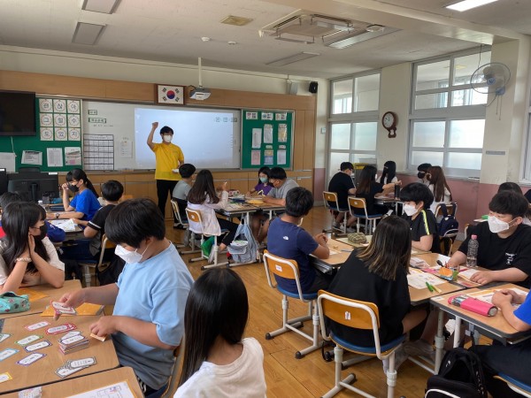 2교시 - 교구 활동에 필요한 돈의 기능을 중심으로 하여 1교시 교재 수업의 전반적인 내용을 훑어보는 시간을 가졌다. 학생들이 교구 활동을 하는 과정에서 자연스럽게 다양한 화폐 단위와 돈의 기능을 학습할 수 있도록 각 기능의 의미를 다시 한 번 구체적으로 짚어주었다. 4~5인이 한 조를 이뤄 게임을 계속하였고, 일찍 끝난 팀의 경우에는 카드 버리기 제한을 없애 추가 게임을 진행할 수 있도록 유연하게 수업을 진행하였다. 마지막으로 골든벨 퀴즈를 풀며 배운 내용을 정리하고 마무리하였다.