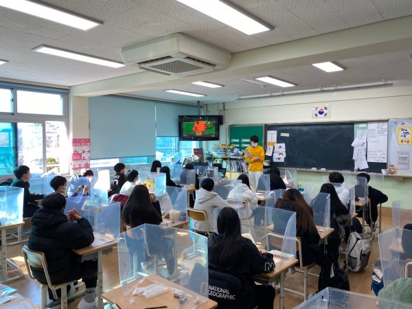 1교시에는 '금융을 알고, 투자를 해요' 교재를 이용하여 정진석 단원이 수업을 진행했습니다. 예시와 경험담을 통해 쉽게 이해할 수 있도록 도왔습니다.