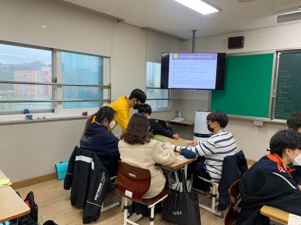 아이들이 게임을 진행하면서 모르는 부분을 알려주기 위해 돌아다니며 설명해주었습니다.