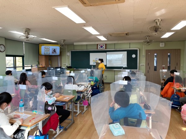김은빈 단원이 진행하였습니다. 크게 소득, 저축 두 가지 개념을 다루었고 돈으로 할 수 있는 일들을 설명할 때 예시를 들어 이해하기 쉽도록 하였습니다. 추가적으로 재난지원금과 로또 당첨금은 어떠한 소득에 속하는지 퀴즈를 내어 알려주었습니다. 또한 학생들의 참여를 독려하기 위해 발표하는 학생을 선정하는 과정에서 선생님과 가위바위보를 하여 이긴 학생이 발표하도록 하였고, 학생들이 가위바위보를 좋아하여 발표에도 열정적으로 참여하였습니다.
