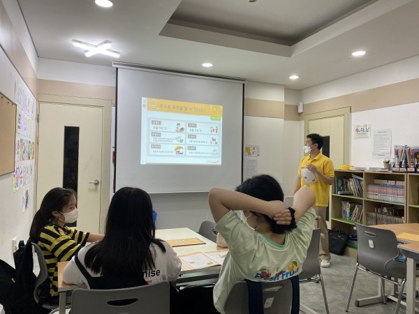 1교시 수업은 박종명 단원이 맡아 진행하였습니다. 이전 수업보다 단어에 난이도가 있어 질문이 많았지만 자세한 설명으로 학생들의 이해를 도왔습니다.