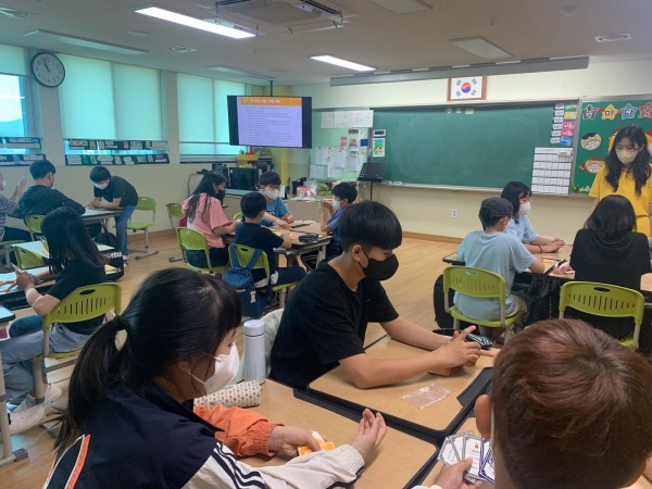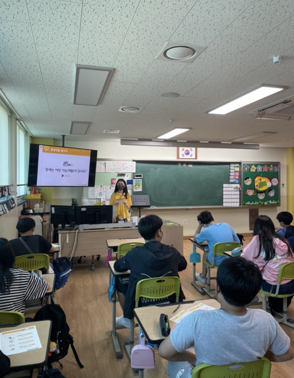 2교시: 김도희 단원이 진행했다. 1교시에 배운 내용을 다시 한번 복습하고 골든벨 퀴즈를 통해 학생들이 확실하게 개념을 익힐 수 있도록 했다. 이어 돈카드 게임을 진행했다.