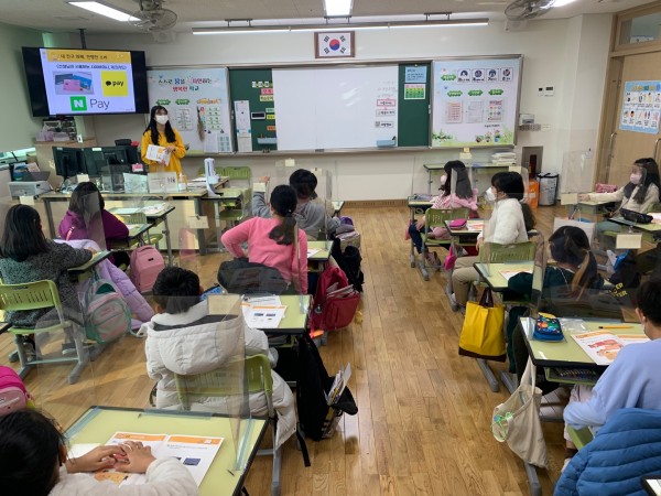 1교시 : 신채영 단원이 진행하였습니다. 소비와 화폐에 대한 자세한 설명과 예시를 들어 학생들이 집중할 수 있도록 하였고 다양한 퀴즈를 통해 학생들의 흥미를 높일 수 있었습니다. 또 선생님이 사용하는 가상화폐 예시를 보여주는 등 재미있는 일상 속 이야기들을 수업에 적극 활용했습니다
