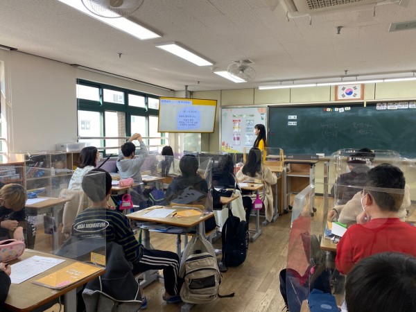박서령 단원이 진행했습니다. 금융기관, 저축과 투자의 차이, 직접투자와 간접투자의 차이에 대해 설명하였습니다. 금융기관의 종류들을 설명 할 때 특히 ‘신용협동기구’가 어렵게 느껴질 것 같아 ‘신협’, ‘새마을금고’의 설명을 덧붙여 아이들이 이해하기 쉽도록 하였습니다. 또, 투자에 대해 설명할 때 삼성전자 주식을 설명해주며 오를 수도 있지만 내릴 수도 있어서 위험이 큰 대신 많은 수익을 얻을 수도 있다고 설명해주었습니다. 수업을 하기 전 비트코인에 대해 말하는 친구가 있어 비트코인의 예를 들기도 하였습니다. 간접투자의 대표적인 예인 펀드를 설명해주며 직접투자와 간접투자의 차이점에 대해 알려주었습니다. 중간마다 퀴즈를 내어 분위기를 환기시키고 아이들을 집중시켰습니다. 마지막 골든벨 퀴즈로 아이들과 함께 복습하는 시간을 가졌습니다.