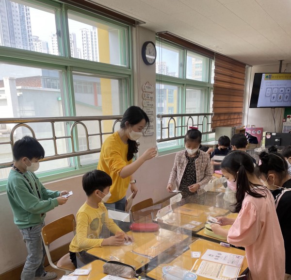 1교시: 소득의 3가지 종류(근로소득, 사업소득, 재산소득)와 지출을 실생활 속 예시를 통해 학습했습니다. 직업을 통해 소득을 얻을 수 있다는 것을 설명하고 사회 발전의 흐름에 맞추어 변화하는 직업의 특성을 이해했습니다.