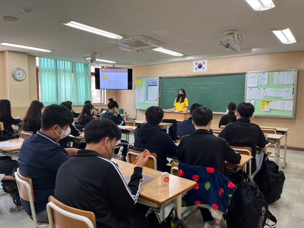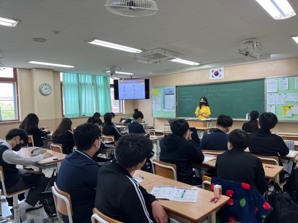 1교시: 김도희 단원이 진행했다. 학생들의 적극적인 참여를 유도하기 위해 다양한 질문을 하고 개념 설명시에는 사례를 덧붙였다. 특히 주식, 펀드, 채권 등 학생들이 어려울 수 있는 개념은 쉬운 설명으로 대체해 반복해서 설명했다. 수업 시간이 다소 길게 주어져서 발표 시간을 길게 가졌고 소통할 수 있는 시간이 많았다. 이 덕에 학생들과 한층 더 가까워진 상태로 수업을 진행한 것 같다. 금융과 금융 기관, 저축과 투자의 개념 및 종류에 대해 설명했다. 골든벨 시간에는 정답 선지가 아닌 선지도 설명을 덧붙여서 이해하기 쉽도록 했다. 경제 동아리 학생들이어서 그런지 열심히 수업에 참여해주었다.