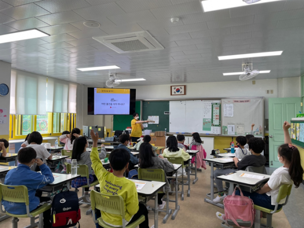 1교시 교재 수업에서는 원채연 단원이 진행을 맡았습니다. <내 친구화폐 현명한 소비>수업을 진행하면서 학생들에게 질문과 참여를 많이 유도하고 경험을 이야기하며 수업 흥미 유발을 많이 하였고 학생들이 한번에 이해하기 힘든 내용에 대해 주변에서 한번쯤은 겪어보았을 내용을 예시를 들어 이해를 도와주었습니다.