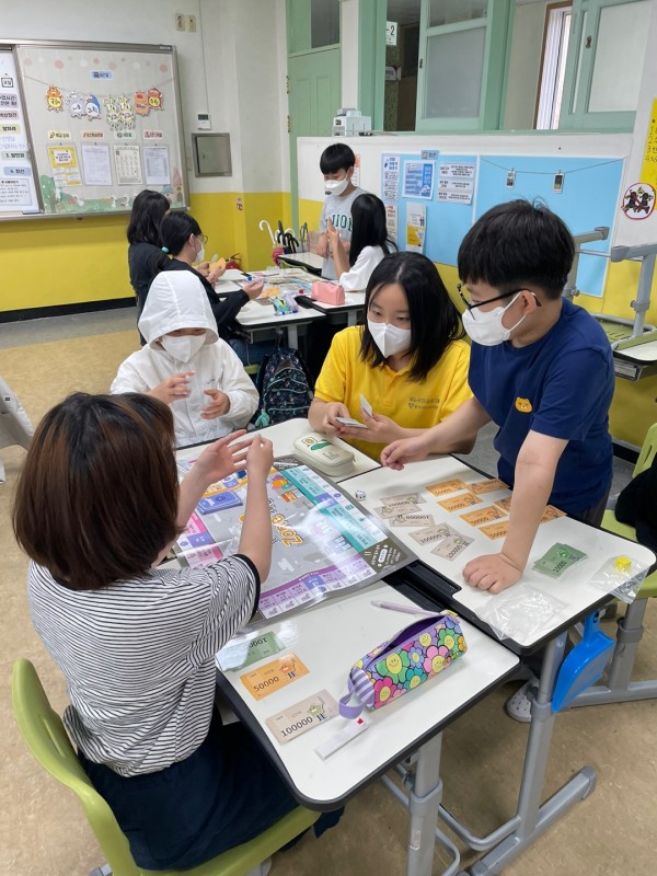 2교시는 전선정 단원이 진행을 하였고 금융존 게임을 하면서 친숙한 보드게임을 활용해 쉽고 재미있게 게임을 진행하고 다양한 칸을 지나가면서 때로는 이득을 보는 일도 있었고 손해를 보는 일도 있었습니다. 학생들이 게임을 너무 재미있게 즐겨줘서 좋았습니다.